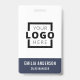 Easily personalize this custom employee name badge with your own company logo and qr code or barcode. Available with different background colors and attachments. No minimum order quantity.