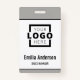 Easily personalize this custom employee name badge with your own company logo and qr code or barcode. Available with different background colors and attachments. No minimum order quantity.