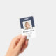 Present a polished and unified front for your team with this modern navy blue badge design. The clean, professional aesthetic features a bold horizontal split, creating a striking contrast that elegantly frames the employee photo and key information. This contemporary style elevates your brand's presence, ensuring a professional and memorable first impression.
