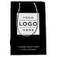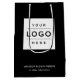 Add a sleek branded touch to your client experience with this premium black gift bag featuring your company logo on both sides framed by your business name, slogan, and website text in white. Perfect for luxury boutique purchases, modern brand product launches, executive client gifts, gala events, and upscale corporate giveaways. Upload your full color logo and personalize all text fields.