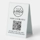 This versatile tabletop tent is perfect for displaying on restaurant tables, bar counters, or the front desk of any business. Featuring a round QR code with two customizable text lines, you can set it to “Scan for menu,” “Scan to order,” or “Connect with us.” The QR code directs customers to your website, social media, or any landing page, making it ideal for contactless, digital engagement. With space for "Your Logo Here," this tabletop tent enhances branding and encourages customer interaction. Custom Business Logo Black White Text QR Code Table Tent Sign