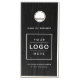 Custom branded cornhole bean bag toss yard game set features a business logo design centered on the front and framed by custom text that can be personalized with the name of the company, location, slogan, website, or other info. Rustic faux black wood grain background and white text colors can be modified.