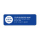 These custom branded white business return address labels feature your professional business logo design. Simply add your company logo to the round blue placeholder image and personalize with your business name and address.