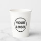 Replace the sample company logo with your own in the sidebar to create branded paper cups for your business with your logo on both sides. Your logo can be any shape and any color. Perfect for corporate events and at the office. You can also add a lid for each cup in the sidebar.