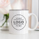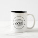 Elevate your brand with this custom two-tone business logo coffee mug featuring a crisp white exterior with a bold black interior for eye-catching contrast. The clean circular logo placeholder appears on both sides, making your brand visible from every angle. Upload your company logo in any color or shape for a polished, professional finish. A memorable branded keepsake for offices, trade shows, conferences, and promotional giveaways.