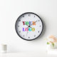 Custom Colors - Design Your Own Personalized Wall Clocks Example with Your Company Logo Branded Business Promotional Clocks / Gifts - Make Unique Your Own Design - Add Your Logo / Image - Photo or QR Code /or Text / more - Resize and move or remove and add elements / image with Customization tool. Choose / add your favorite background color ! Please use your logo - image that does not infringe anyone's Copyright !! Good Luck - Be Happy :) by MIGNED