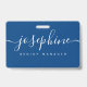 Introducing our Simple Business Logo Elegant Custom Script blue Name Badge! This badge is the perfect accessory to showcase your chic and elegant style in a professional setting. Whether it's for work, business meetings, or networking events, this name badge will make you stand out with its unique and stylish design.