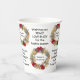 Festive CHRISTMAS WREATH paper cups for your FESTIVE celebrations. Current design shows Christmas wreath step and repeat pattern with the words SEASON'S GREETINGS inside, against a plain white background. The accompanying inspirational quote reads WISHING YOU PEACE, LOVE & JOY FOR THE FESTIVE SEASON. All text is CUSTOMIZABLE so you can change to your text of choice, such as your family/business name, church organization, or favorite quote/message. The wreath image is also CUSTOMIZABLE, so you can upload your corporate logo or church emblem (circle recommended, and delete the text inside wreath).