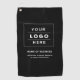 Modern black and white Custom branded Golf Towel bean bag toss yard game set features a business logo design centered on the front and framed by custom text that can be personalized with the name of the company, location, slogan, website, or other info. Black background and white text colors can be modified.