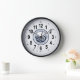 The size of the clock is dramatic and the abstract alcohol ink design is soothing and intricate at the same time. I chose the black frame that adds pop to the blue and gold design. The gold printing would be better in a slightly darker or larger font. I love it and I’m looking for just the right place in ny new apartment. I would recommend this clock for a personal gift or a present. I feel that the quality is excellent for the money! I’m a bit of a clock nut so I’m pretty particular about my purchases. The clock is larger in diameter than many if the clocks I have, so it stands out very well. I think a slightly darker printing color and a moderately larger size would best suit a professional decor or add more impact in a work place item.