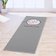 This yoga mat features a logo and name template on a gray background and is easily customizable with your business logo and name.