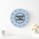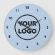 Replace the sample company logo with your own in the sidebar to create a stylish minimal wall clock for your business with a simple light blue background. Your logo can be in color or black and white. Bold black numbers around the edge make it easy to tell the time. Click to customize further if you need to adjust the size of your logo with the scale buttons. If you want the background color to show through your logo, upload a version of your logo with a transparent background.