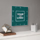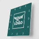 Create your own minimal square wall clock for your business featuring your logo on a teal background with simple white numbers around the edge. Replace the sample company logo with your own in the sidebar. Your logo can be a circle, square, or another shape. White or light colored logos will work best with this design. Click to customize further if you need to adjust the size of your logo with the scale buttons or to change the background color.