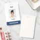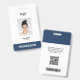 Easily personalize this Custom Employee Name Badge with Photo, Scan Bar Code and business logo. A simple business design in navy blue and white colors fully customizable in front and back sizes, sans-serif basic and modern fonts and a professional and clear look. Perfect for small business, clinic, hospital, or as BSN Nurse Badge. Avaiable with lanyard, metal clip or with retractable. No minimum order.