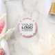Personalized poker game chips with a custom business logo and your own text. This design in pink includes the number 250 but it can be edited with any value amount.