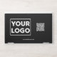 Look professional with a laptop skin featuring your business logo, a customizable QR code, and company website or slogan on a black background. Your corporate logo can be circular, square, or any shape. White or light colored logos will work best with the dark background. Replace the sample logo, website URL, and text with your own in the sidebar.
