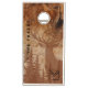 Cornhole board in classic wood grain colors with a minimal & simplistic design. Wilderness forest cabin design.