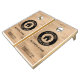 Natural Wood Cornhole Set, Yellow and Purple bags