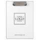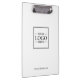 Promote your brand with personalized clipboards, featuring your logo and custom text in an elegant black serif font.