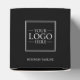Promote your brand with a personalized favor boxes featuring your business logo with custom text in an elegant white serif font on a black background.