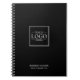 Promote your brand with personalized notebooks, featuring your logo and custom text in an elegant serif font.