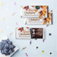 These beautiful corporate Thanksgiving party Hershey Bars feature a pretty autumn leaf border of brown and orange leaves with orange pumpkins around your personalized company text. Customize a chic business holiday party dessert favor for your professional group with in lovely fall colors.