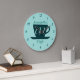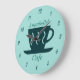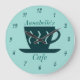 Cute customizable wall clock for your restaurant or coffee shop. Personalize with your cafe or diner name in teal to remind your customer's where they are dining. Pretty kitchen room decor.
