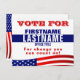 Custom campaign election template postcard with stars, stripes and red, white and blue colors.