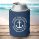 Can cooler with your custom captain and boat name around an anchor with circular rope border