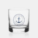 Glass featuring a dark blue, elegant anchor and rope emblem with your custom name and boat name on a white background.