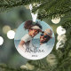 Commemorate a special trip or vacation with this elegant acrylic ornament featuring a photo on each side. Personalize with your custom caption using two lines of custom text on each side, in black lettering on a sheer white overlay.