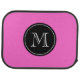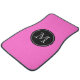 Custom car mat set in hot pink with monogram name. Personalizable design and background color. Cool gift idea for men and women.