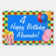 Add your name to this personalized boys birthday themed yard sign. Design features a vibrant blue background with red and white popcorn, pink cotton candy and colorful balloons. Customize the sign for your yard, lawn or any use with your child's name and age. Great for a boy or girl's carnival or amusement park themed birthday party or special event. Great to tell guests where the party is at, and direct them to the correct location. Easy to customize it online.