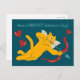 Send the Purrfect Valentine's Day greetings with this postcard. It features a cartoon style illustration of an orange cat doing his best impersonation of cupid with some festive red heart accents against a dark blue background. It's ready to be personalized with your own message on the front in teal colored lettering. The reverse side has a coordinating heart graphic and plenty of room for writing in your own message.