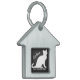 Cut cat identification tags for collars | Customize ID. Cute gift idea for new pet, cat lovers, pet owners, cat person, cat lady etc. ID tag your cat in case he or she gets lost or needs to be resqued. Add your pet's name and a phone number to help finders bring the cat back to the rightful owner. Customizable background color. Silhouette of white kitten.