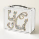 Custom Cat Monogram Font Metallic Pearl Abalone Metal Lunch Box