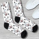 Personalized Cat Photo Patterned Socks. Celebrate the love for a feline friend with these cozy socks, featuring a fun mix of custom photo circles paired with a heart pattern on a clean white background (which can be changed to any color for a personal touch). Each photo circle is bordered with a sleek gray outline and showcases a favorite photo of a cat or a cherished moment together, along with gray hearts for an extra dose of sweetness. Customize the font, heart accents, and circle colors to create a unique keepsake. Perfect for birthdays, holidays, or any occasion, these socks are a playful and heartfelt way for any cat lover to show off their furry companion with every step!