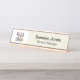 Easily personalize this changeable name plate with your own company logo, custom name, and job title. You can customize the background color to match your corporate colors. Available in silver, black, or rose gold colors in two sizes – standard 2 inch x 8 inch or long 2 inch x 10 inch – and in two styles – as a desk name plate or an office door name plate. No minimum order quantity and no setup fee.