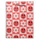 Custom Checkered Flowers and Happy Faces Red Notebook