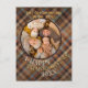Unique, rustic, cute and decorative Holiday season greeting card. With classic Happy Thanksgiving wish on a cozy warm colorful teal blue and orange red colored plaid tartan pattern. With room to customize or personalize with your own cheerful photo and family name on the front of the card, and a customizable season greeting poem on the backside of the card with room for family member names.