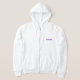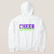 Great looking cheerleader's white zippered hoodie, with purple script text, on the front, and purple and light green text, ,on the backside. Personalize the text to read what you want.