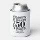 Commemorate a special birthday with these awesome personalized party favor can coolers. Modern black and white design features "cheers and beers to XX years" in bold white lettering. Add the occasion and date beneath for a unique birthday party keepsake. Example shown for a 50th birthday party.