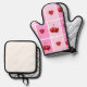 Custom Cherry Heart Checkerboard Pattern Oven Mitt & Pot Holder Set
