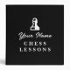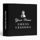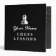 Custom chess board binder for player and teacher. Personalize with your own text. Elegant black and white design with pawn chess piece logo and checkered play field. Handy for lessons, practice, school and more. Cool Birthday gift idea for chess lover, fan, tutor, club, kids, student, grand master etc. Use ALT code to edit the icon into a pawn, rook, bishop, knight, queen or king. ♕♔♘♗♖♙ ♚♛♞♝♜♟