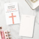 A floral embossed cross with modern typography. The badge can be customized for staff, volunteers, or name tags for special events. The badge can be personalized further by replacing the cross image with your logo.