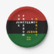 Stylish JUNETEENTH paper plates with Christian Bible reference, showing the inspirational quote TRUE FREEDOM IN CHRIST JESUS in a crossword format including JUNETEENTH, and is set against red, black and green panels (colors of the PAN AFRICAN FLAG). The main text is based on the Scripture reference from John 8:36 - HE WHO THE SON (JESUS) SETS FREE IS FREE INDEED. The Bible reference JOHN 8:36 is customizable, so you can replace the text with your MONOGRAM. This would make an ideal addition to your party supplies for Juneteenth, Black History Month, Christmas, Birthdays and throughout the year. Be prepared to share your faith, as this would also make a great conversation starter.