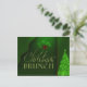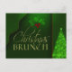 Custom Christmas Brunch postcard invitations with Christmas tree, Holly berry and gold script invitation font.