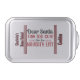 A festive cake pan invites seasonal cheer with a playful message for Santa. Emblazoned with the phrase Dear Santa, I am too cute for the naughty list, it features a designated area for personalizing with a name.