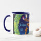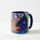 Custom Christmas coffee mug, Rudolph and lights. Blues.