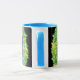 Custom Christmas coffee mug, Rudolph and lights. Blues.